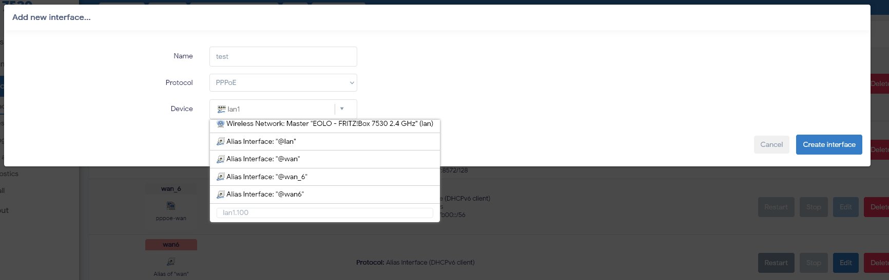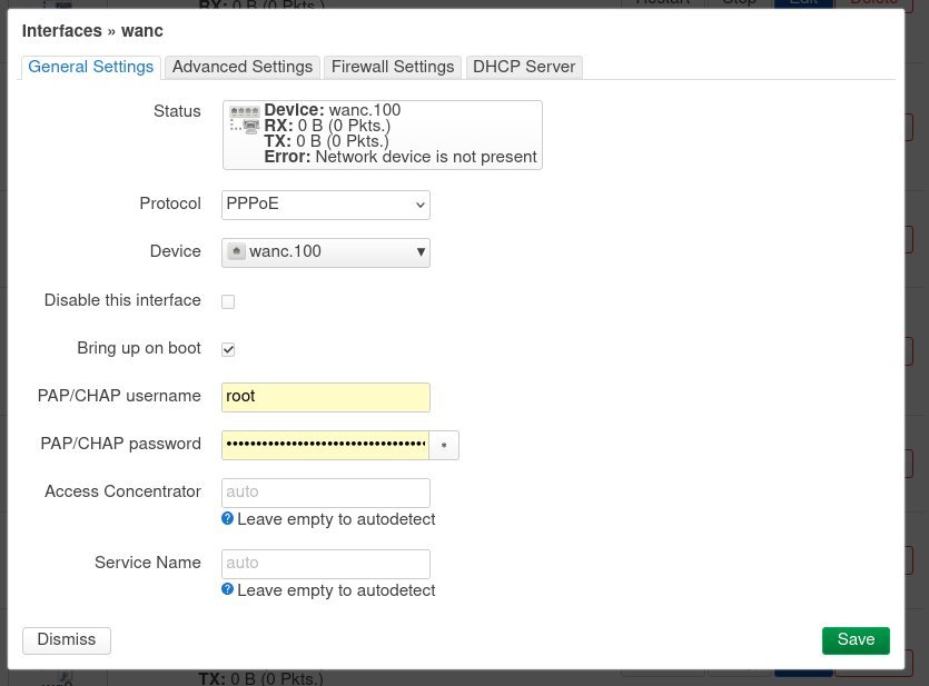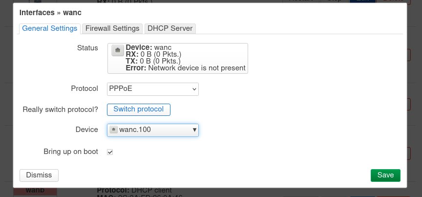 Una volta che sai qual è la WAN devi creare la PPPoE usando usandola come interfaccia base (nel tuo caso probabilmente la eth1), però siccome hai la VLAN da impostare devi usare un trucchetto, al posto di selezionare direttamente eth1 vai nello spazio dove puoi scrivere il nome dell'interfaccia e scrivi