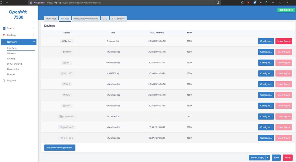 Io nel mio router ho dovuto togliere una delle porte dal bridge perché di default sul 7530 è configurato per usare le porte DSL come WAN e quindi tutte le ethernet le tratta come LAN e le unisce, ma ne tuo caso non credo sia da fare quel passaggio. Se sono tutte quante unite devi togliere la WAN, sempre da "Configure".