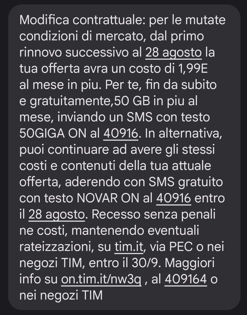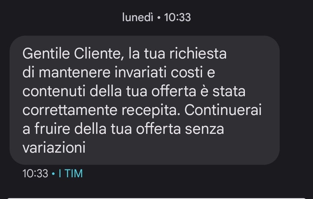Al che decido di seguire le istruzioni e di inviare il messaggio per rifiutare l'aumento, consapevole che avrei poi dovuto subire l'aggiunta della famosa clausola adeguamento Istat. Ma mi andava bene, comunque sia l'aumento massimo previsto del 10% tra un anno è comunque inferiore ai 2 euro mensili in più che mai chiederebbero di sborsare oggi.