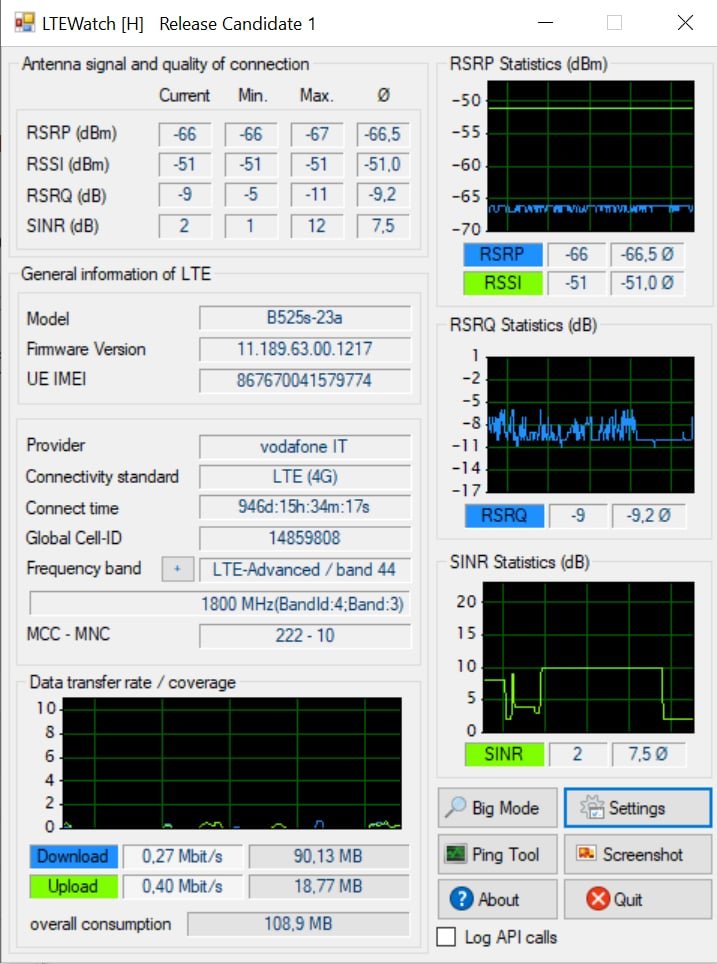 Di seguito i valori relativi alla mia linea: RSRP -66, RSSI -51, RSRQ 9-.