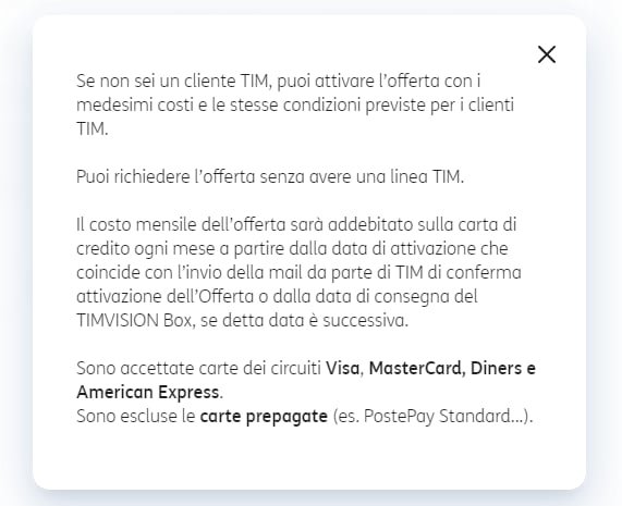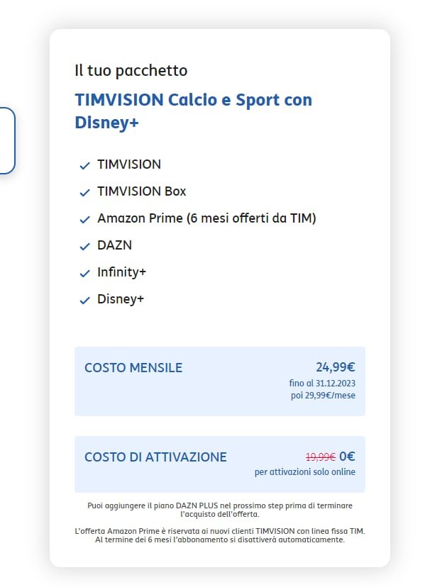 Buongiorno, domenica ho attivato l'offerta Timvision Calcio e Sport con Disney+ tramite il sito TIM con pagamento su carta di credito e in fase di attivazione leggendo la finestra che lascio in allegato ho continuato tranquillamente la procedura, ma una volta finita ho ricevuto tutto tranne la mail per attivare Disney+. Chiamando il 189 secondo gli operatori per i non clienti non è incluso e ho mandato un reclamo scritto via mail per cui mi sa che non riceverò mai una risposta. Come posso procedere secondo voi?
