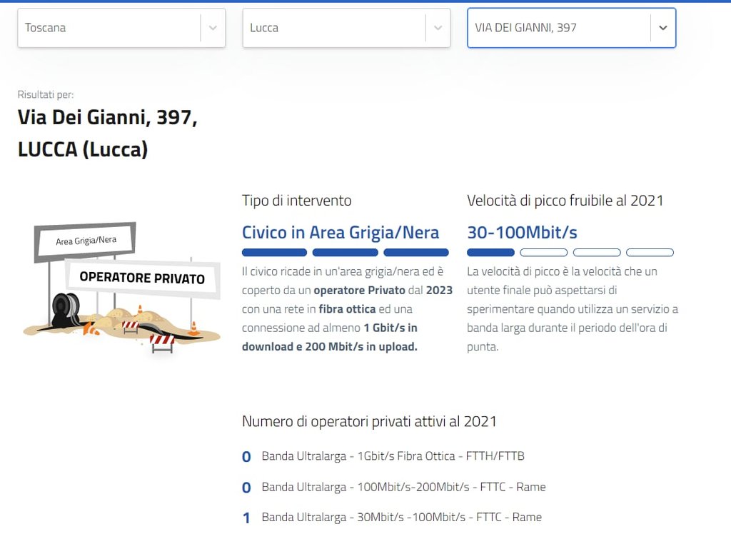 Secondo il piano BUL dovrei essere collegato nel corso del 2023 da un privato (Fibercop).