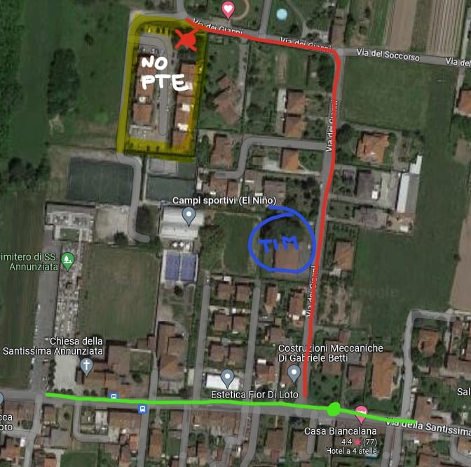 ed anche nella strada principale non vedo alcun PTE da nessuna parte.