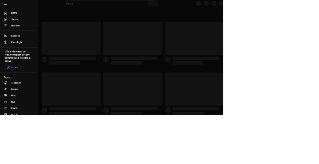 Salve, è da ieri sera che improvvisamente Youtube non carica la homepage. Ho una schermata totalmente nera ( ho la modalità notturna attiva ) ;