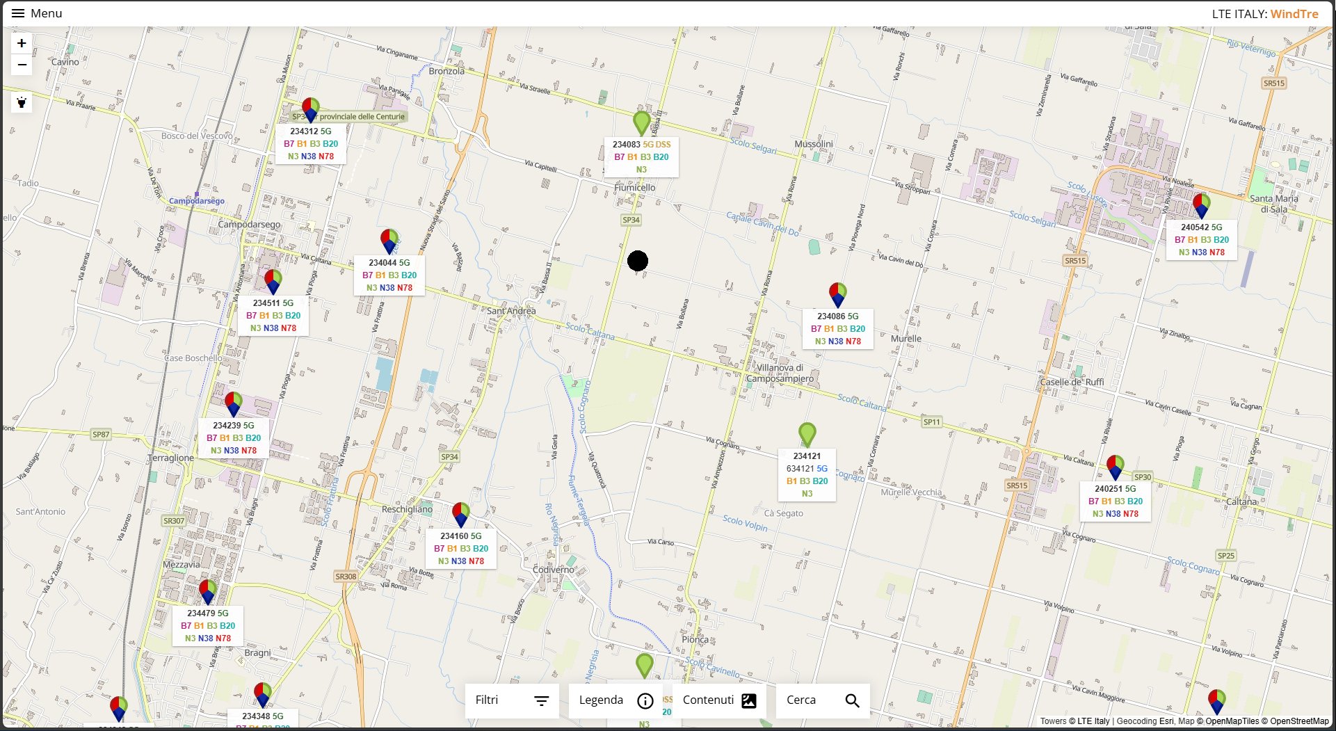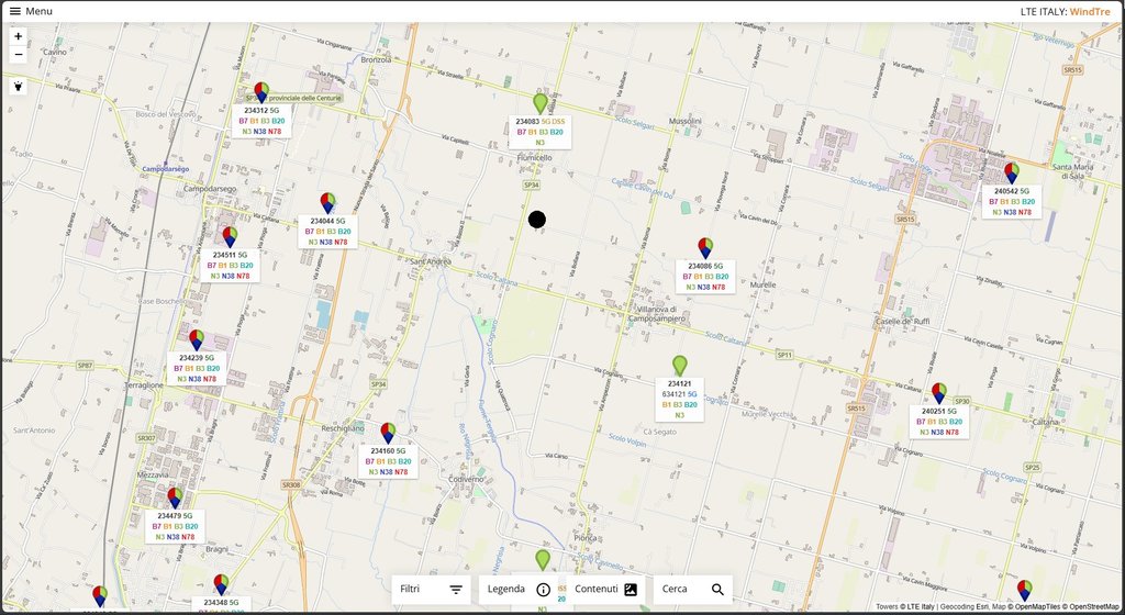 Mi dedicherò invece alla connessione di Via Moretta. Li arriva solo la fibra di Fibercop sull'armadio davanti Nalesso; la BUL non esiste al di là del Muson, e Lenfiber segna la via come gialla.