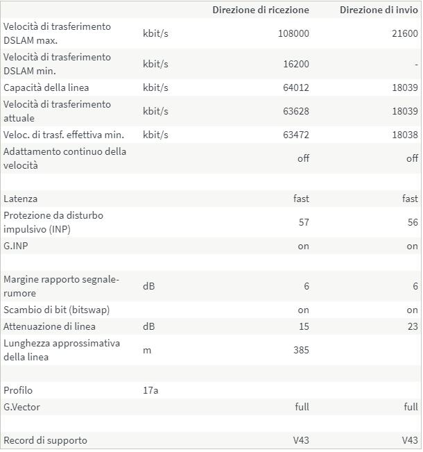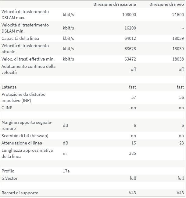 La stima della connessione data dall'operatore dice una velocità media di 49/17 ma fortunatamente vado a 63/21.