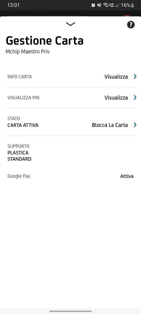 Esclusa la possibilità - come per Google Pay/Wallet - di associare la carta Bancomat a partire dall'app Samsung causa motivazioni tecniche che ora non interessano, mi son presto reso conto che nella apposita sezione delll'app mobile banking non è disponibile la specifica voce di menu...
