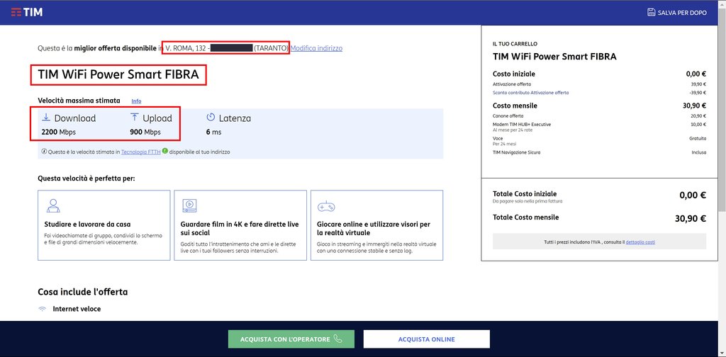 Se accedo da qui [https://www.tim.it/fisso-e-mobile/fibra-e-adsl/verifica-copertura?gclid=Cj0KCQjwjt-oBhDKARIsABVRB0wjDeDWvmnDSgu5gkamb5VIon8w481Owzv5gig50HXBUHBRHEcCjsMaAn2XEALw_wcB]