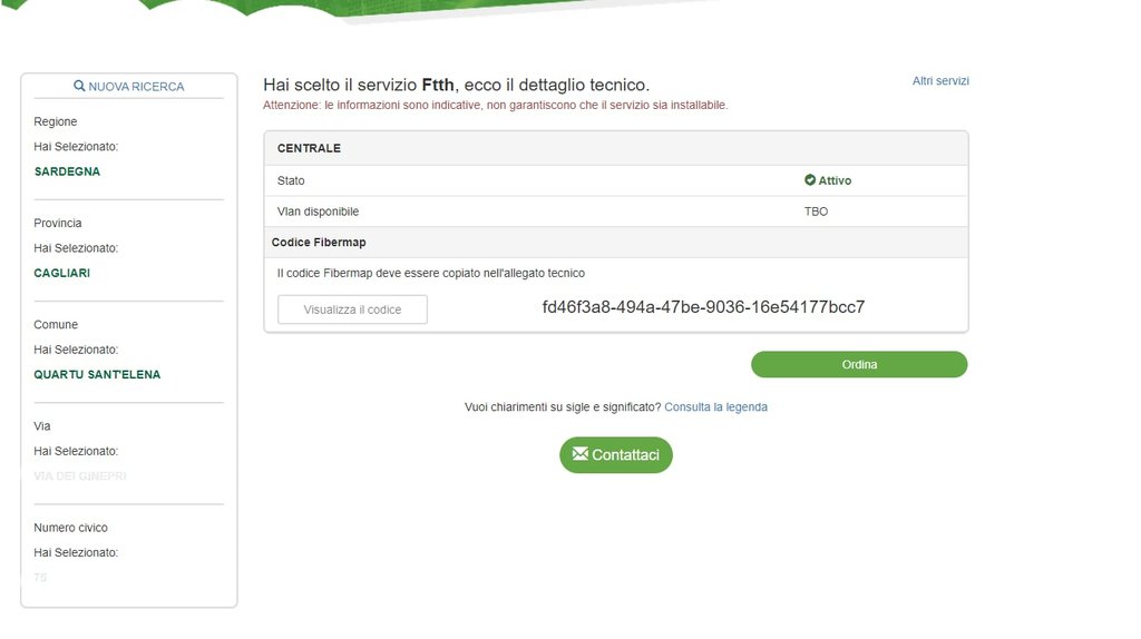 I primi di ottobre trovo un operatore Tim (doblo rosso e polo rossa) che sta risolvendo un guasto in una cabina fuori dalla mia via. Chiedo aiuto e insieme andiamo a vedere la cabina. Scopro che ho ben 4 linee solo nella mia cabina e che solo 1 è stata acquistata e attivata mentre le altre 3 sono disponibili. Mi conferma che, se ci fosse stata la cabina satura, non si sarebbe potuti procedere alla sottoscrizione del mio contratto. Richiamo time faccio mille reclami facendo presente quanto appena scritto. Alla fine riesco a mettermi in contatto anche con Piero Cossu, responsabile di zona Sirti spa e mi comunica che non hanno ricevuto (da settembre a ieri 17 ottobre) nessuna richiesta di attivazione ne di intervento. Gli mando le foto della cabina e mi conferma che non è satura. Controlla anche su fibermap e la ftth risulta disponibile.