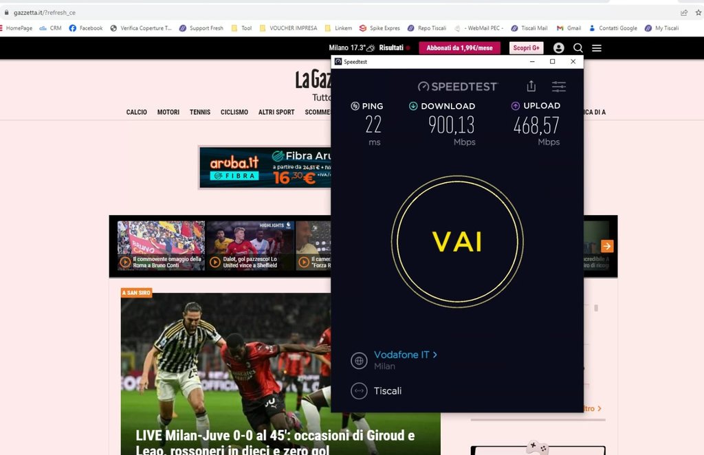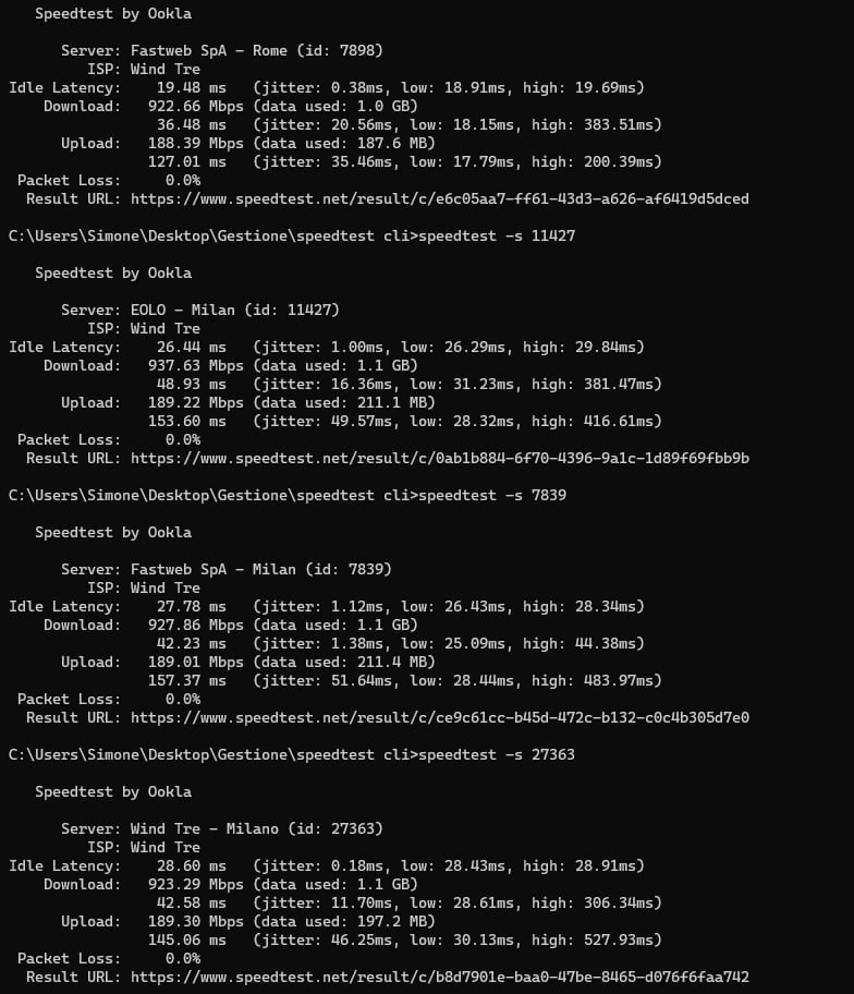Test effettuati tramite connessione ethernet