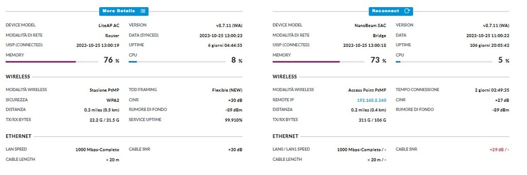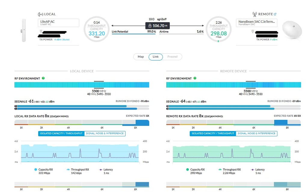 La qualità del segnale è molto buona, i due siti distano circa 200m in linea d'aria e non ci sono ostacoli visibili, tuttavia facendo degli speedtest non riesco a superare i 160mbit/s.