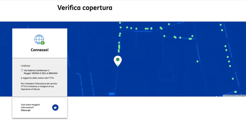 Praticamente OpenFiber ha realizzato i lavori questa estate su tutta la via dove abito (sta facendo l'intero Comune) e gli operatori hanno poi attivato la FTTH tranne che al mio numero civico (il numero 1 della via) dove da mappa di OpenFiber risulta non attivato. Ho chiamato in TIM (ho la Fibra a 100mega con TIM) e mi hanno detto che il mio numero civico sembra faccia parte di un'altra centrale per cui i lavori non sono ancora stati fatti.