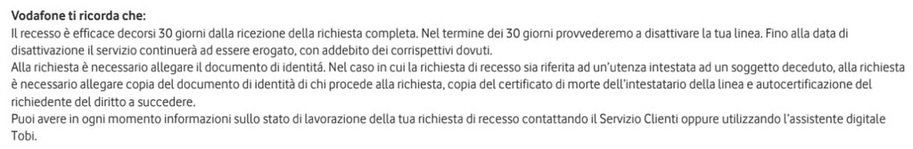Essendo vincolato con un S22 a rate, Lunedi ho fatto recesso per modifica contrattuale su mobile Vodafone via pec, allegando il loro modulo, dove c'è scritto che il recesso avrà efficacia dopo 30gg, tempo in cui io ho la possibilità di fare portabilità verso altro gestore.