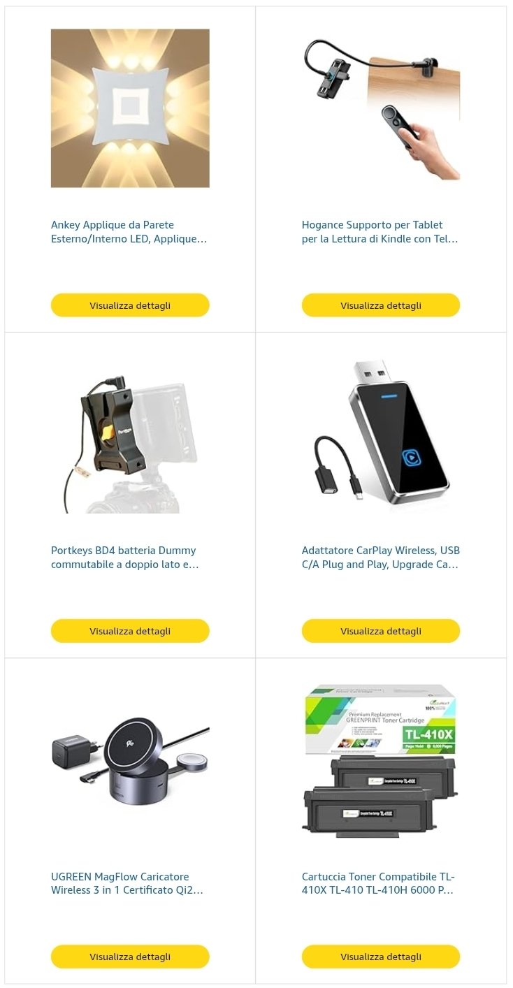 Tra l'altro c'è una marea di roba ultimamente che è talmente specifica e talmente di settore che trovo assurdo anche che sia nel programma ad esempio io sono invaso da guarnizioni per testate e tester per il PH delle piscine. Ora voglio dire ma come fai a pensare che uno possa recensire oggetti del genere? Al limite proponili nella lista personale di gente che chiaramente fa il meccanico ma mandarne paginate a me o a chiunque non sia un meccanico non ha veramente senso.
