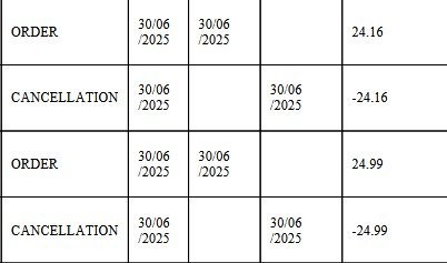 Dove la penultima colonna a destra è la data di cancellazione, che corrisponde allo stesso giorno in cui l'ho ordinata.