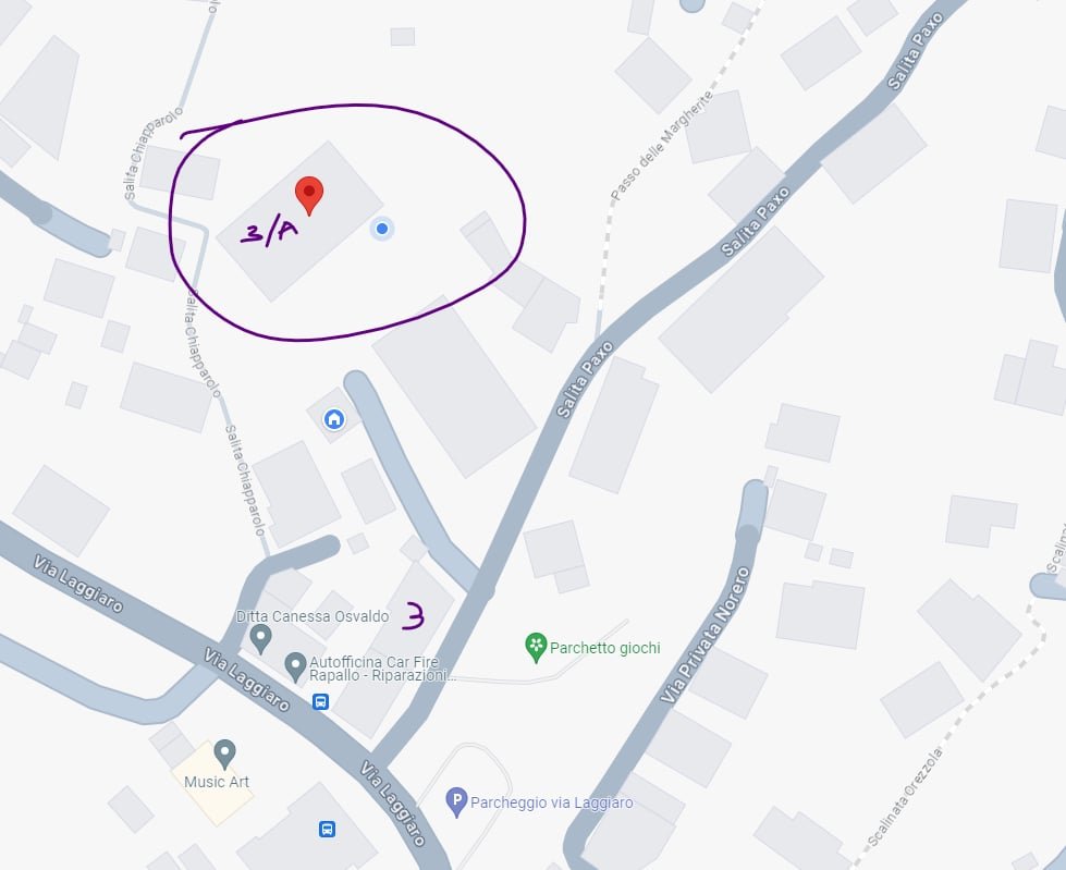 Ora, il mio civico non affaccia direttamente su Salita Paxo (a differenza del civico 3) ma è una cinquantina di metri più all'interno, raggiunto da un breve tratto di strada privata.