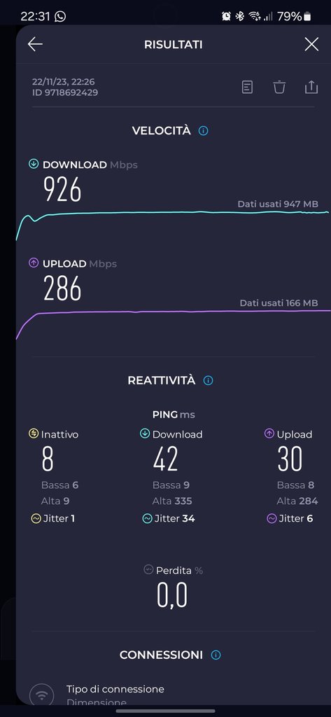 mark129 no, quello postato era in wi fi.. come dispositivo connesso via cavo ho solo ps5 perché ho solo un PC fisso ma connesso in wi fi.. dalla play il test era normale, 900 e passa Mb..