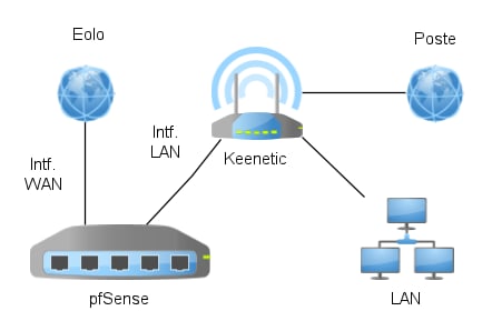 devo impostarmi una connessione di backup in maniera definitiva perché per ora ho praticamente usato solo dei workaroud , nel forum della netgate mi consigliavano caldamente di usare le VLAN in modo da evitare connessioni dirette tra lo ZTE delle poste (l'MFR286R mi pare) e i vari client in LAN. Ho provato a impostare la VLAN sul firewall PFsense e sul keenetic a cui a sua volta è collegato lo ZTE (il mio firewall ha solo 2 porte ethernet, LAN e WAN), ho impostato così la VLAN su PFsense