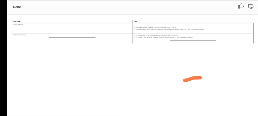 @bortolotti80 ho trovato questo su internet, riguardo le specifiche del mio PC.. nella foto che posterò, c'è scritto che i modelli in possesso di una scheda grafica superiore alla Nvidia GeForce GTX 1660, hanno una scheda di rete ethernet con una velocità di trasferimento massima di 2.5 GB.. il mio PC possiede una Nvidia rtx 2060, per cui ho una scheda di rete a 2.5 gbps.. quindi mi chiedo, come devo fare per raggiungere quella velocità in speedtest?.