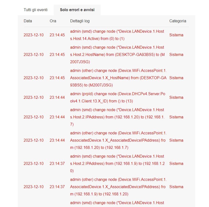 Ho inoltre visto una marea di errori entrando nel pannello di controllo della vodafone station inerenti al sistema, praticamente ogni 5 sec c'è un errore ma sono tutti uguali,