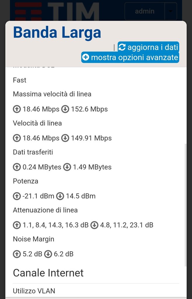 Lascio in allegato le statistiche della linea. Se servono altri parametri che genera il tim hun pubblicherò ulteriori screenshot.