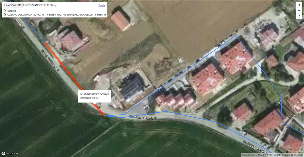 Qui invece è la stessa zona, con la tratta prevista dal piano BUL. Come noterete, nella vista satellite manca il palazzo dove abito, nonché la strada che vi consente l'accesso. Il tracciato della fibra passa per la via pricipale e per la strada chiusa dietro detto palazzo. Mi devo preoccupare o il giorno che sarà, ci saranno problemi? E' una costruzione terminata fine 2014/inizio 2015. Sono oltre 70 metri a tornare sulla via principale dove passa il tracciato, ma sono una 30ina dal tracciato che passa nella strada chiusa alle spalle del palazzo dove abito. Si tratta di Ozzano dell'Emilia (BO)