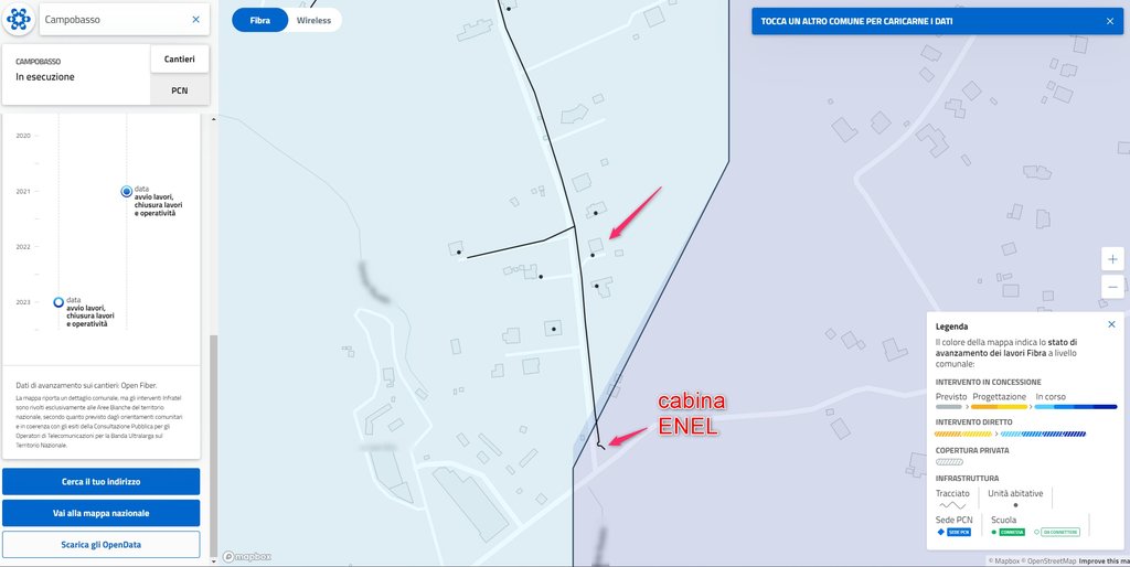 Jacob81 Buonasera, il mio comune (Campobasso) è presente nella lista, ma la mia contrada non risulta ancora coperta. Non sono stati eseguiti scavi di posa, non sono presenti pozzetti #BUL all'esterno delle proprietà, nè ROE su pali. Risulta presente solo un pozzetto #BUL e un CNO all'inizio della contrada, di fianco ala cabina ENEL preesistente. A chi posso chiedere una verifica mandando in pvt il mio indirizzo? Grazie