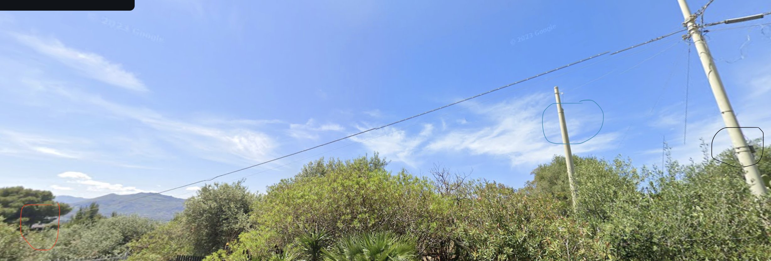 Per spiegarmi meglio: Il PTE è nel palo (Cerchio nero), la linea attuale di rame arriva al palo cerchiato rosso e loro dicono di non poter arrivare la per via aerea a causa della distanza, quindi hanno chiesto di passare dal palo cerchiato blu (che era stato installato per una vecchia linea rame che è stata dismessa).