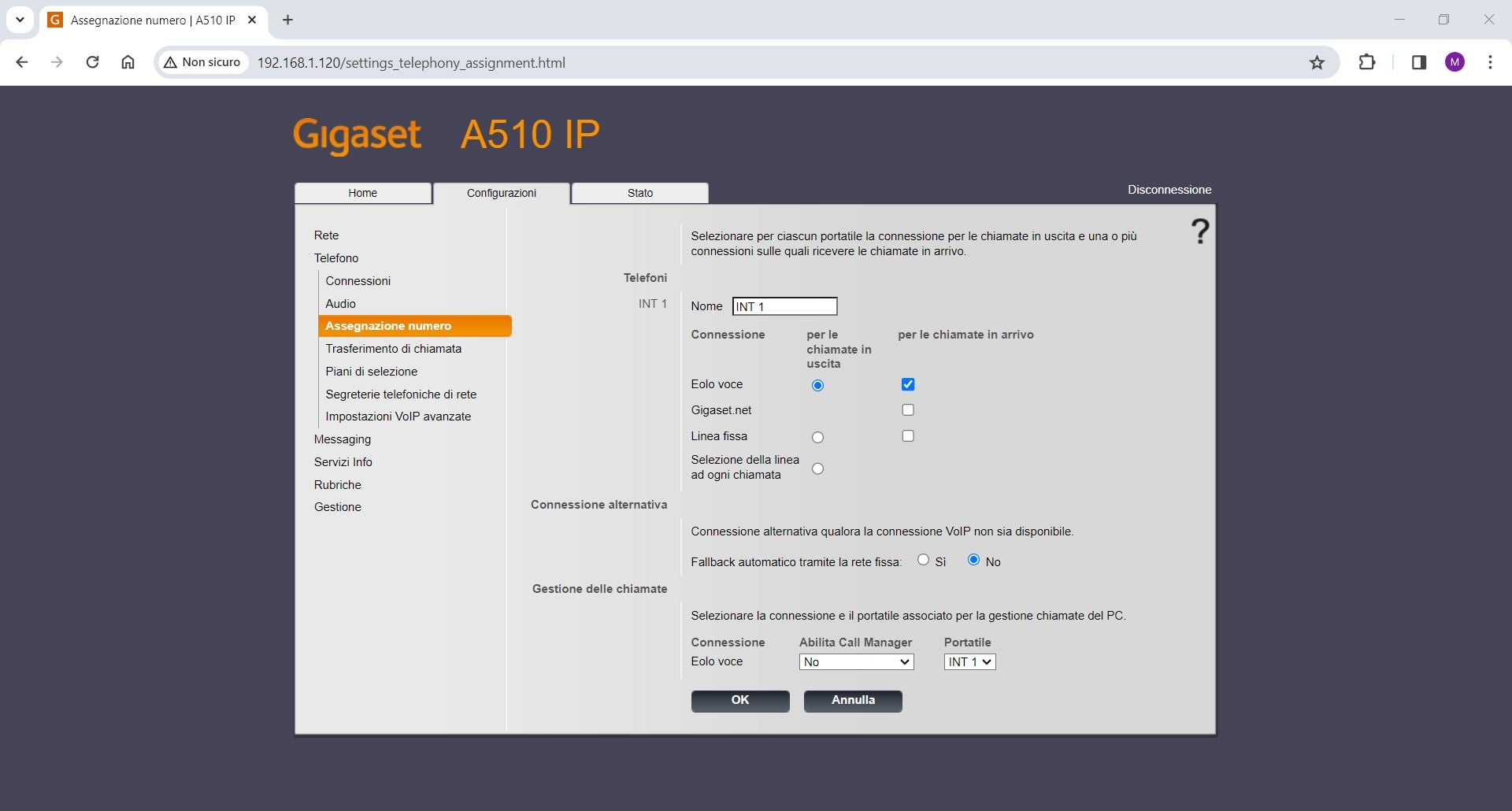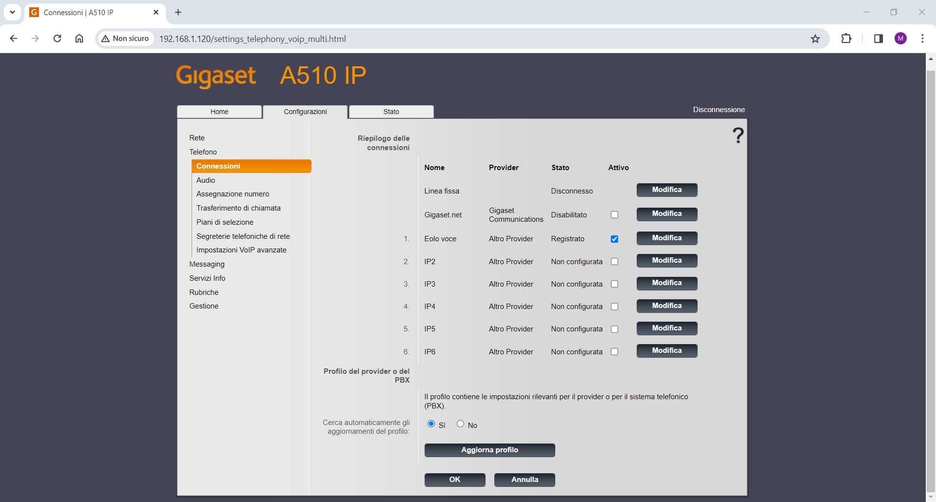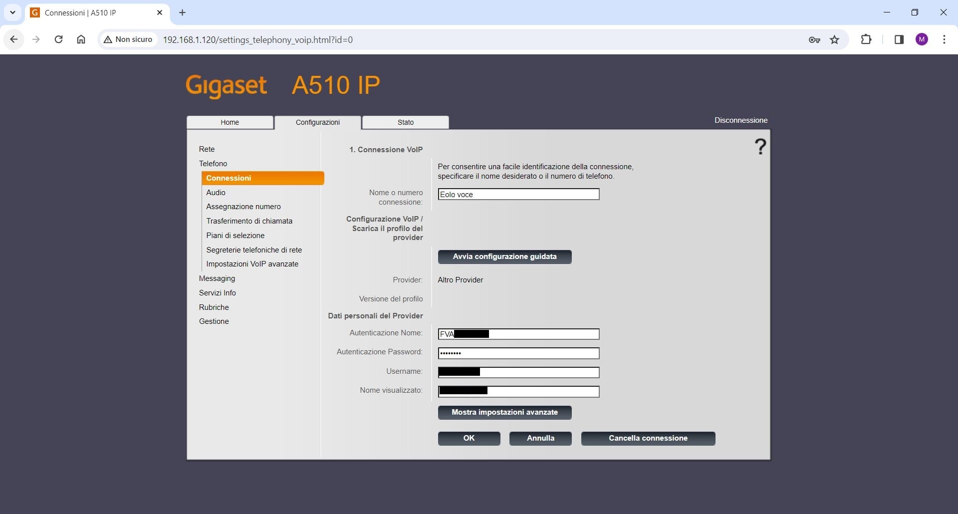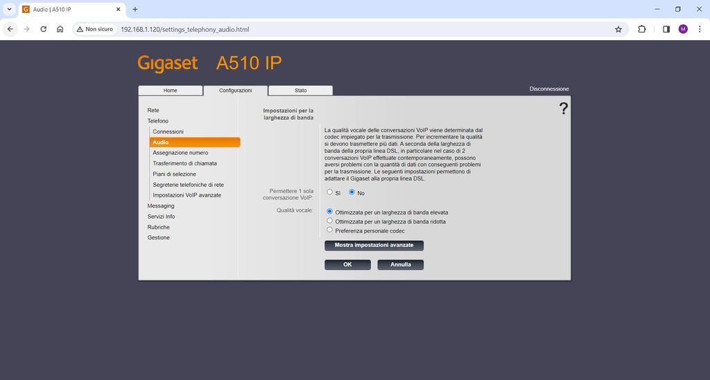 da circa un mese utilizzo un telefono cordless Gigaset A510 IP con il servizio VoIP di Eolo, quindi non uso la porta "Phone" di Eolo router (ADB) in quanto il telefono è collegato con un cavo ethernet al router. Nessun problema fino a qualche giorno fa, quando il telefono a smesso di ricevere telefonate, ma le poteva effettuare.