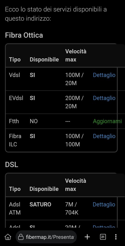 Nel nostro piano tariffario sarebbe inclusa la Fibra, ma mi fu detto che la zona ancora non fosse ancora abilitata.