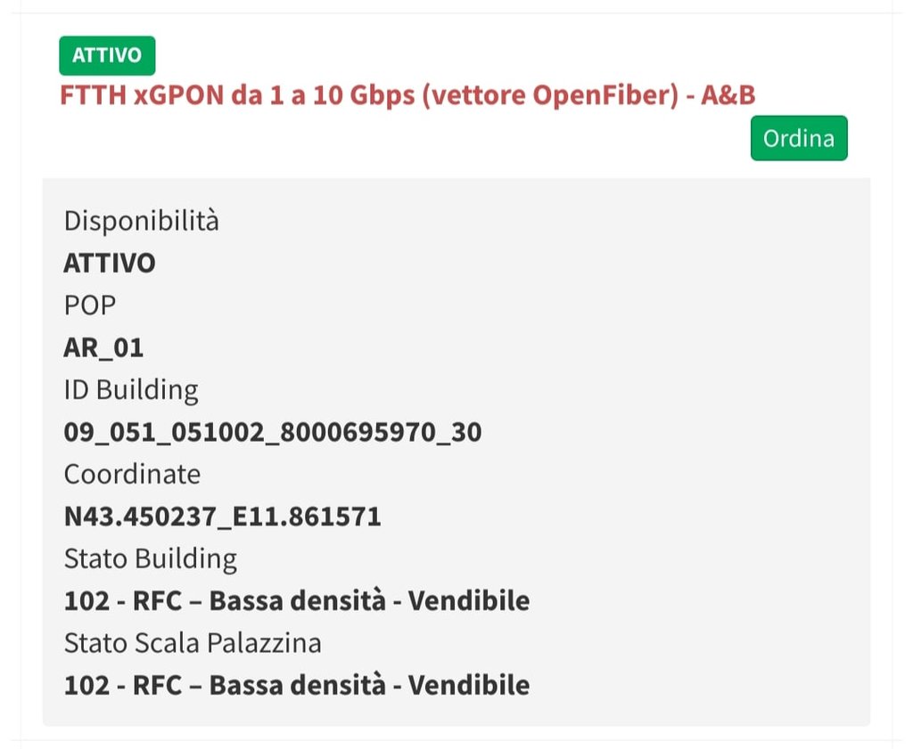 Zaier La mia richiesta di passaggio alla fibra con Fastweb, che è il mio attuale fornitore di FTTC, si è "arenata" un paio di volte e anche lì non sono riuscito a sapere nulla dal servizio clienti.