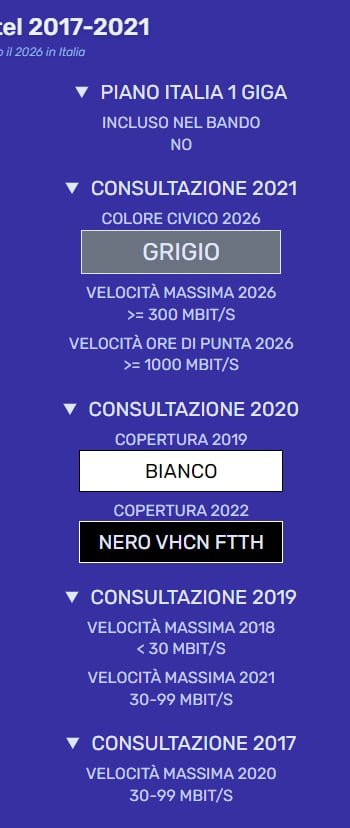 Buonasera, di tanto in tanto vado a verificare lo stato di avanzamento dei lavori Fibercop/OpenFiber nella mia zona e, come sempre, resto deluso. Sono attestato su linea rigida e da diversi mesi non si vedono più tecnici in giro che hanno cablato quasi l'intero comune e, nello specifico, tutta la frazione in cui vivo ad esclusione del mio indirizzo. Per la prima volta mi sono imbattuto nell'utilissimo tool di "Hendymenny" ma non riesco ad interpretare il risultato (che posto qui). Qualcuno che mi delucida? Grazie a tutti.