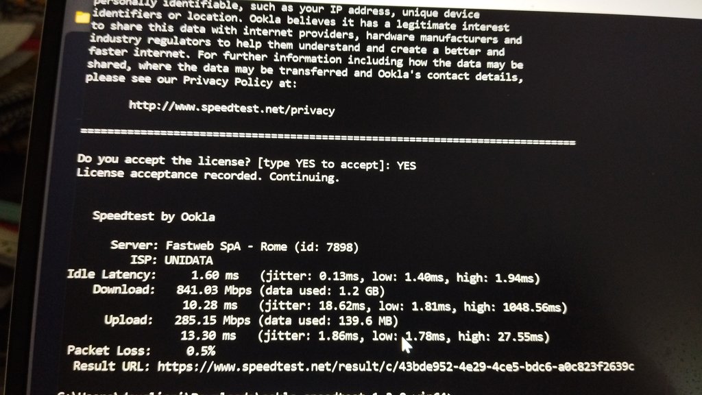 Ho effettuato lo speedtest da linea di comando ma il risultato è molto più basso in wifi rispetto al cavo Lan.
