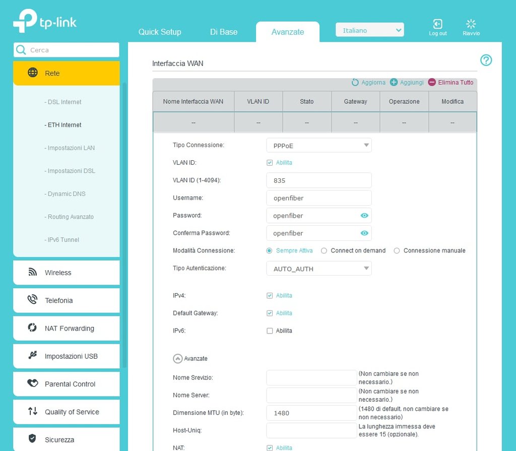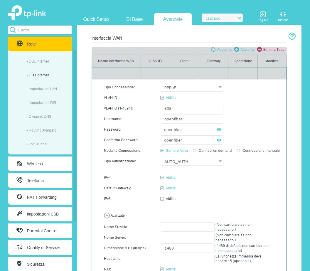 essendo che viaggio su rete Openfiber e ho l'ONT ZTE 6005.