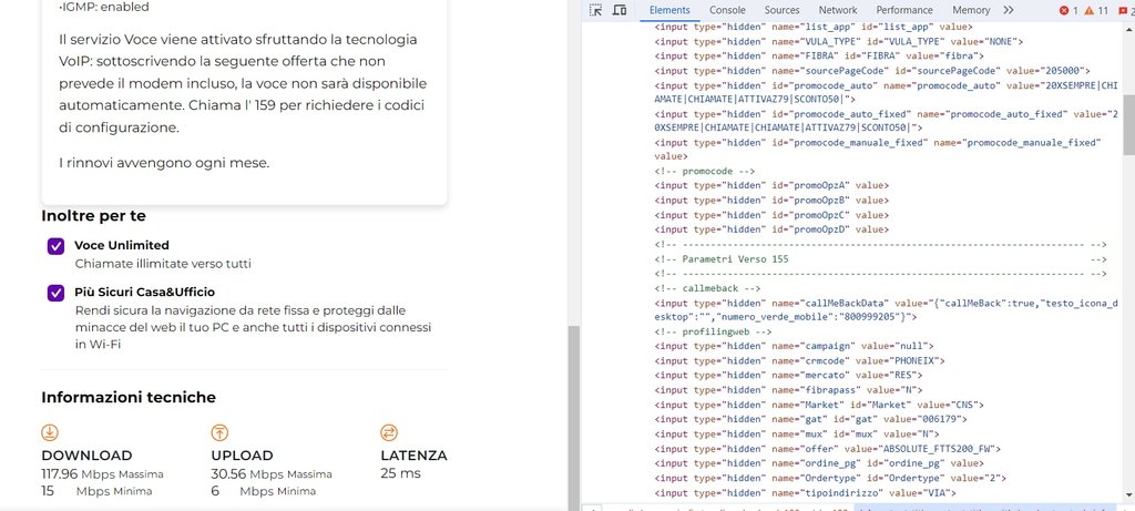 e la velocità in upload viene riportata in modo corretto invece che la dicitura rotta "fttcVelocitaUp"
