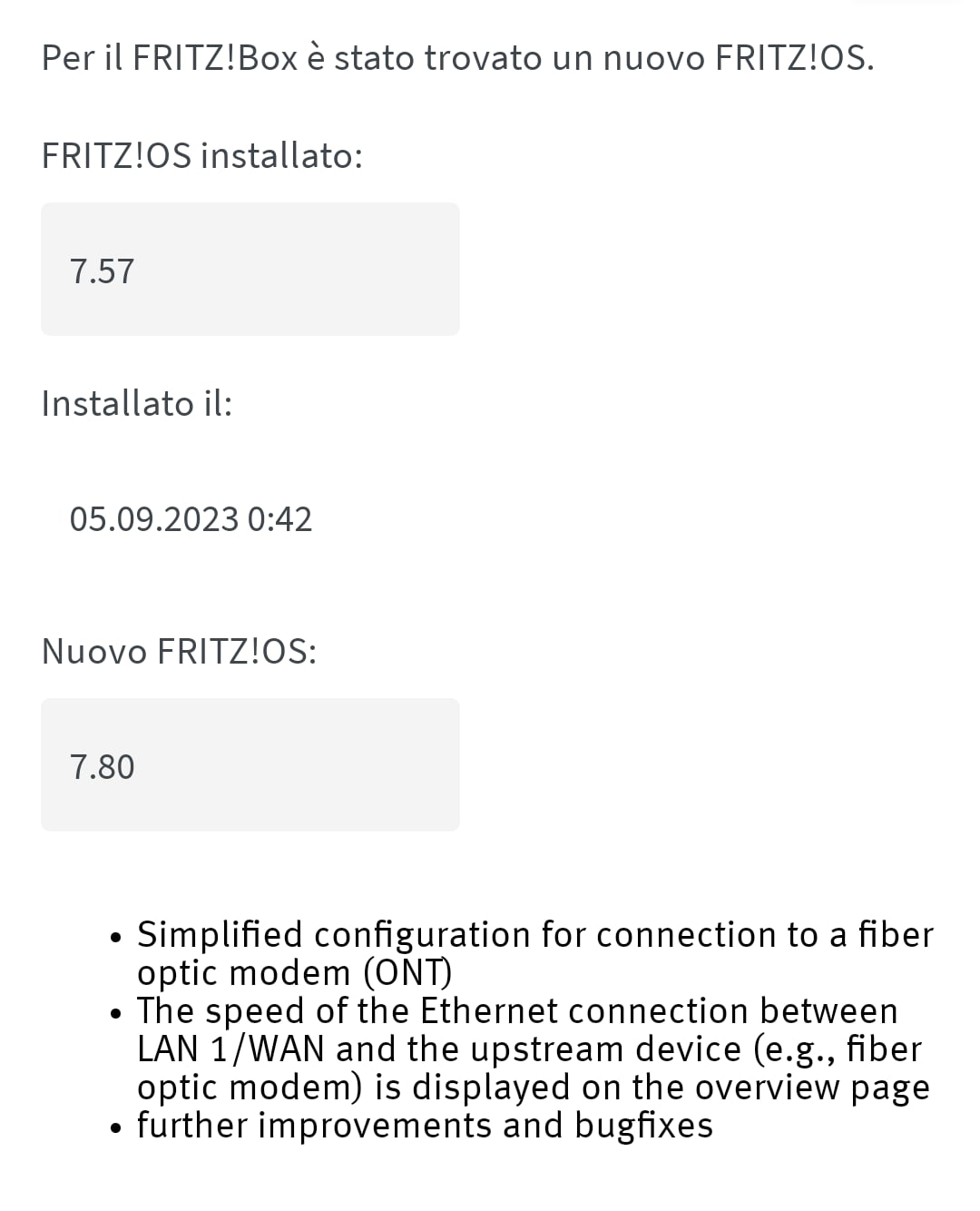 Filippo94 Saviolo dovrebbero riceverlo solo questi, almeno per il momento FRITZ!Box 5590 FRITZ!Box 5530 FRITZ!Box 7590 AX (Wi-Fi 6 model) FRITZ!Box 7530 AX (Wi-Fi 6 model)