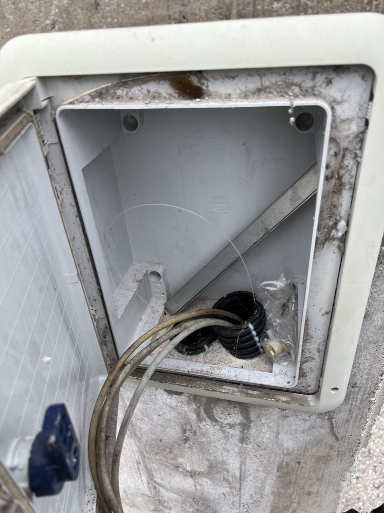 Questa è la situazione dentro la colonna di cemento, di quei quattro cavi in rame uno sicuramente va a casa mia, c’è inoltre quello che credo sia un sondino ma non ho idea da dove arrivi, comunque della chiostrina non c’è traccia