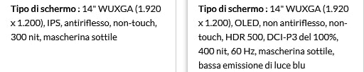 Fra00 Quale tipo di display scegliereste? Lo userò con un monitor esterno ma anche nel divano o nel letto. Lo userò per un corso di informatica e uso generale film / YouTube Il display sarà WUXGA, HDR 500, 60 Hz e il rapporto è 19:10 Sono preoccupato per il burn in, ma generalmente Oled ha colori migliori