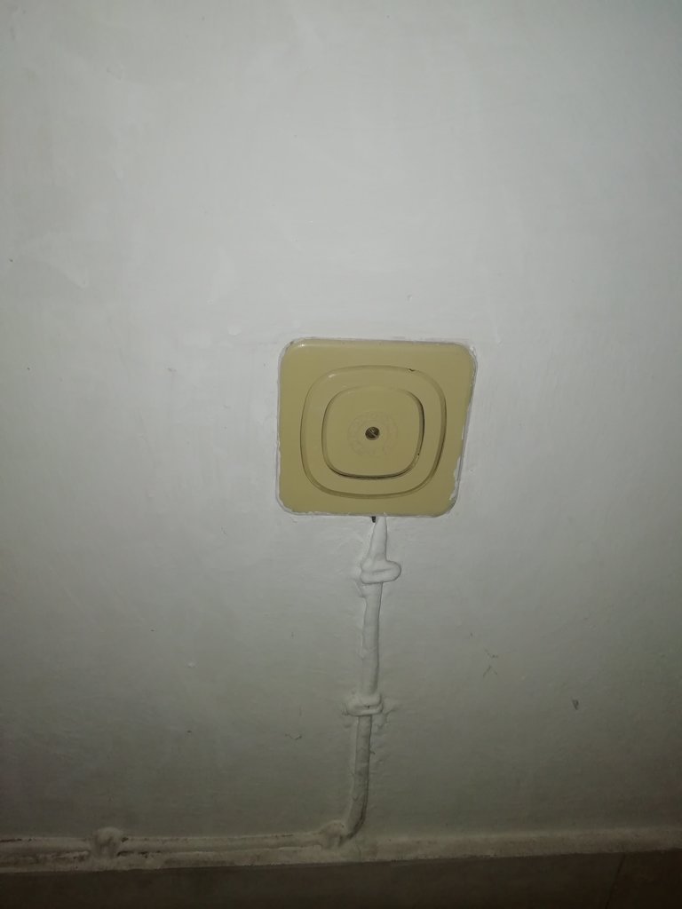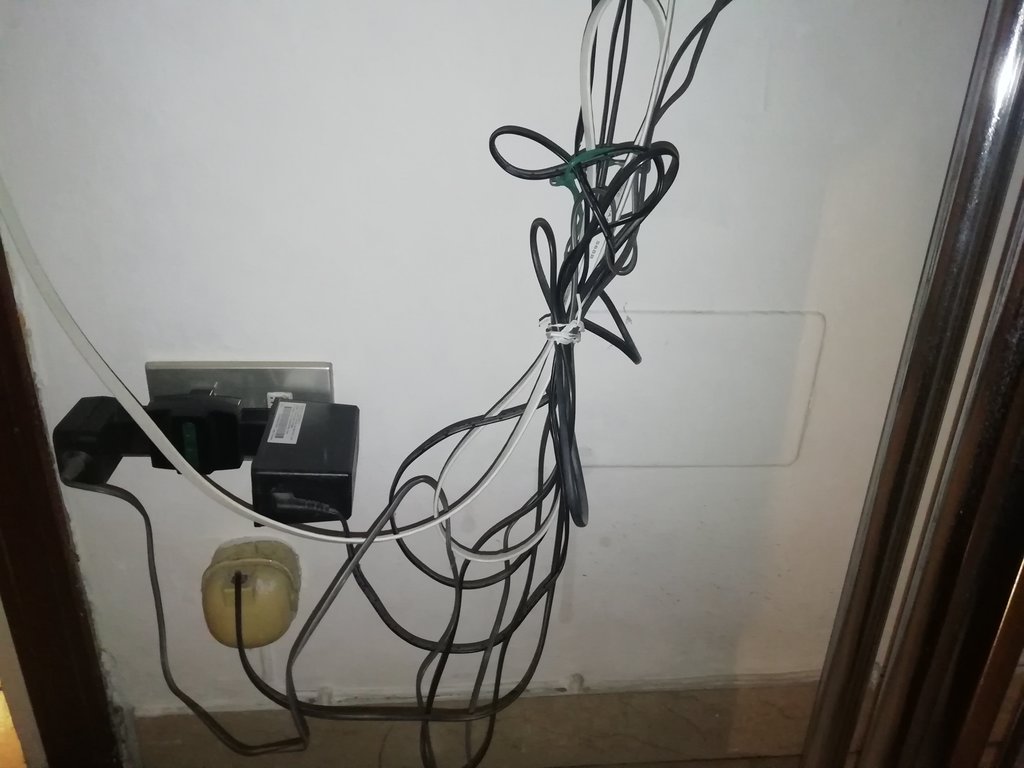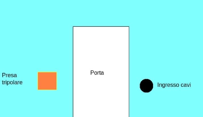 Come vedete, i fili in rame escono dal muro, fanno il giro intorno alla porta, e finiscono nella presa tripolare.
