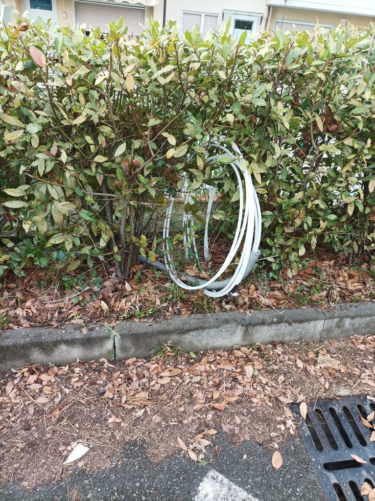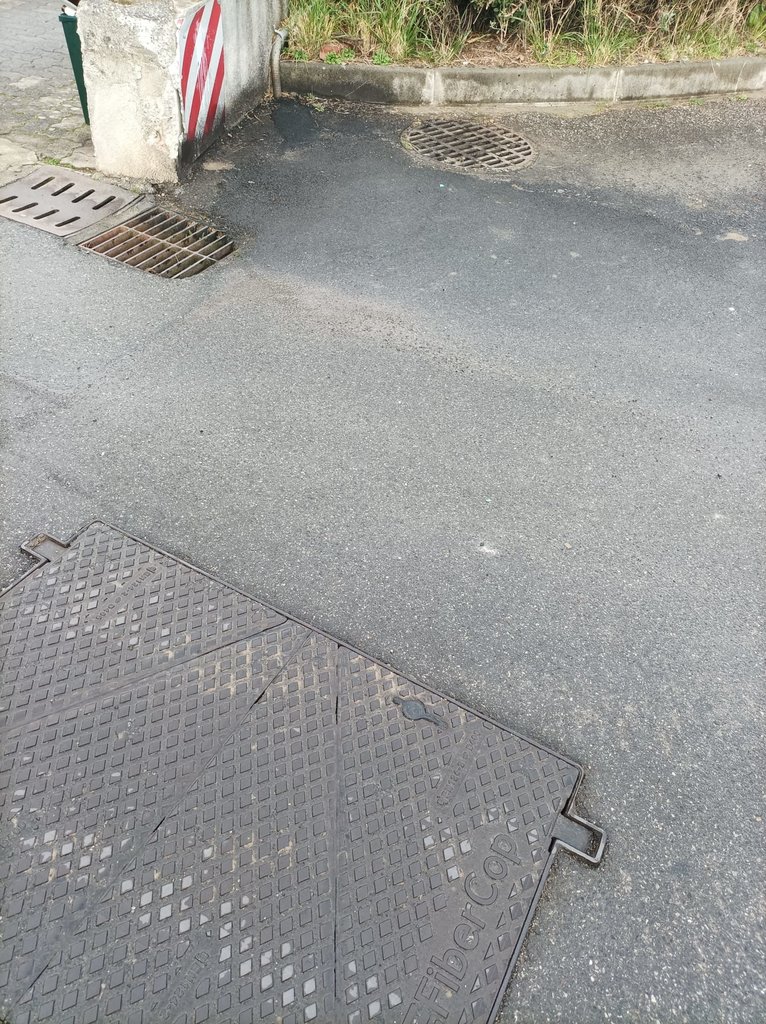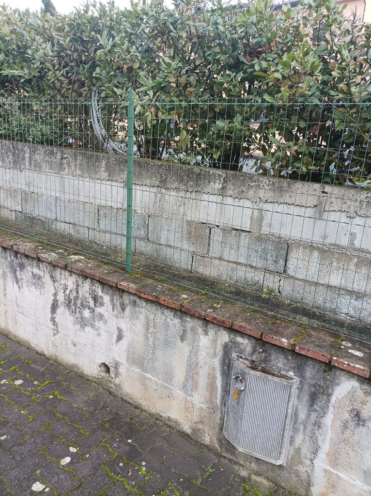 Da questo pozzetto (quando era aperto ho potuto verificare personalmente buttando l'occhio), è stata creata una traccia che "riemerge" assieme al corrugato per poi continuare all'interno di una siepe e "morire" all'altezza della chiostrina condominiale che però si trova un metro circa al di là della siepe, all'interno del muretto condominiale.