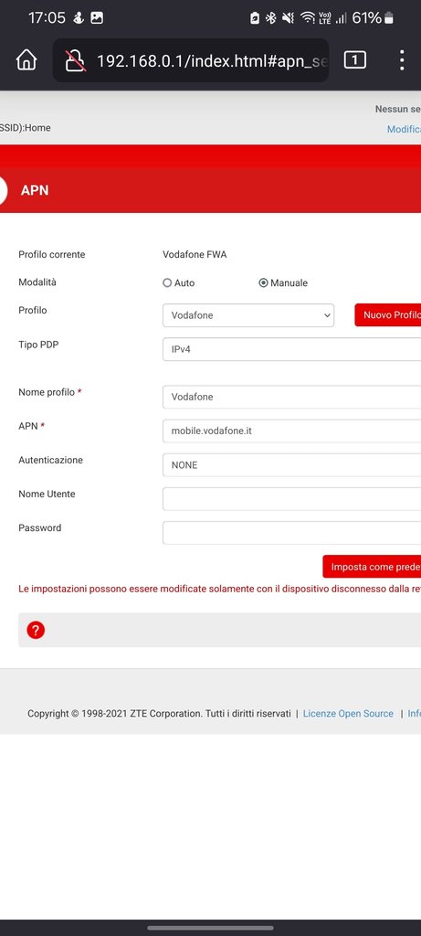 Lo uso con W3 e per curiosità ho inserito una SIM Vodafone, ma nonostante abbia configurato l'APN corretto, non mi permette di attivare la connessione internet.