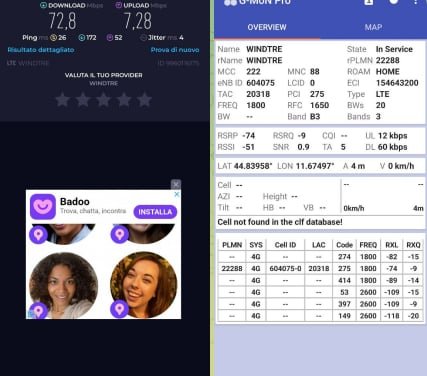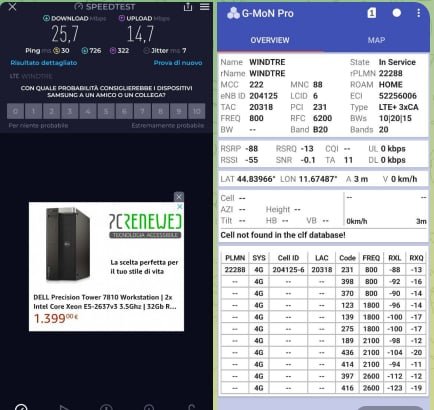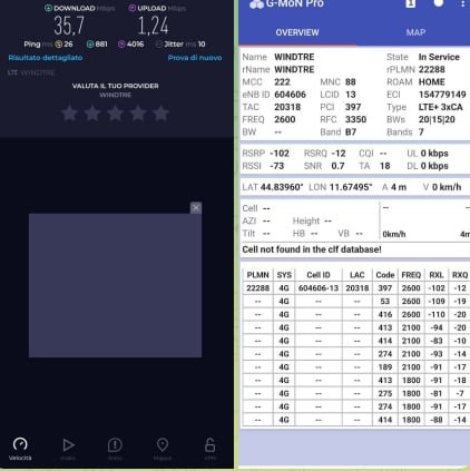 4G ,test con le 3BTS che aggancio(mi basta spostarmi di qualche metro sul balcone e si sposta da una all'altra):
