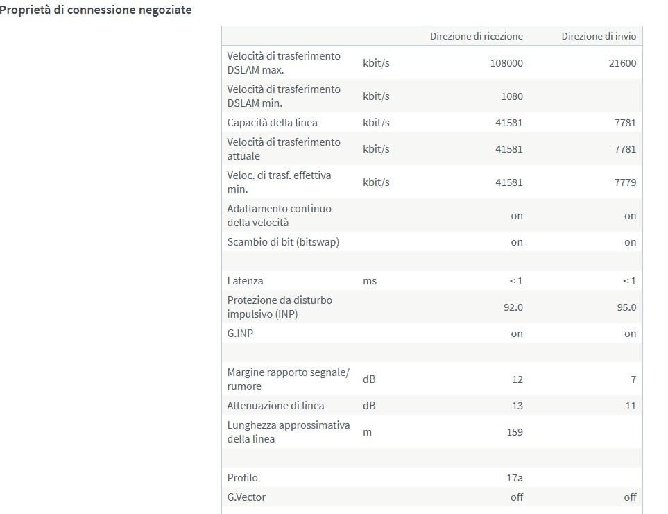 Con Powerline collegati da speed test: D: 38,66 U: 7,26 da router ho preso le prime due righe della pagina principale del fritzbox: D 40,6 41,6 U 7,6 7,8
