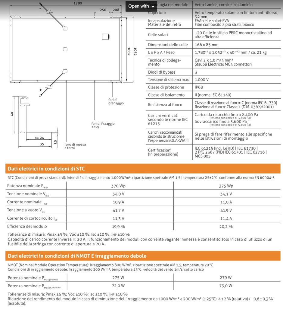 i pannelli da 375W che hai stra scriticato hanno una efficenza uguale 20.2, ma sono più piccoli e sono 1.8 x 1.0 metri, cioè con 20 cm in meno per ogni lato, considerando che questi pannelli ormai hanno 2 anni, è equivalente.
