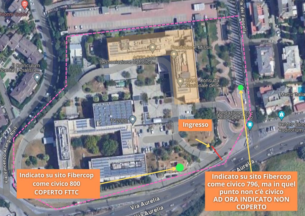 Nell'immagine allegata si vede come attorno all'edificio ci siano diversi punti di Fibercop, ma cercando l'edificio sul loro sito, non risulta ovviamente coperto, in pratica manca il PTE finale. La cosa assurda è che sappiamo che nel palazzo sono presenti altre realtà che - ad esempio - sappiamo hanno fatto portare una fibra dedicata con costi esorbitanti (anche più di 900 euro al mese con vodafone!!).