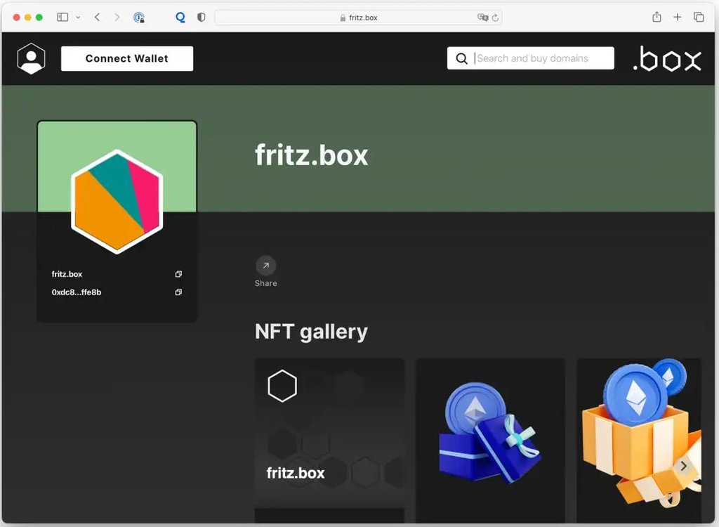 Dallo screenshot salvato presente nell'articolo di cui sopra è possibile vedere che inizialmente fritz.box apriva un sito Web sconosciuto che offriva NFT:
