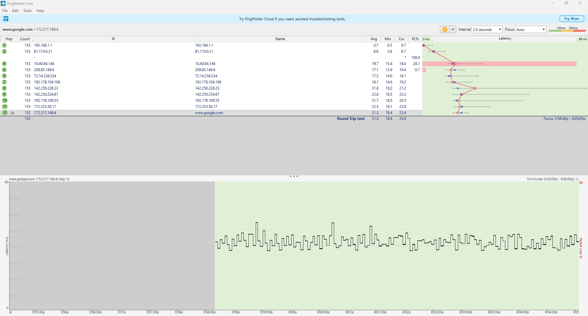 Marioo27 Da più di 1 mese mando ticket all'assistenza di Eolo chiedendo spiegazioni e soluzioni per un grosso problema di packetloss, ma mi arrivano risposte generali dicendo che hanno fatto delle modifiche da remoto e il problema dovrebbe essere risolto ma non è stato risolto un bel niente, c'é qualcuno perfavore che potrebbe aiutarmi? Ho Eolo 100 FWA, lascio in allegato un Ping Plotter che ho eseguito e illustra bene la situazione.