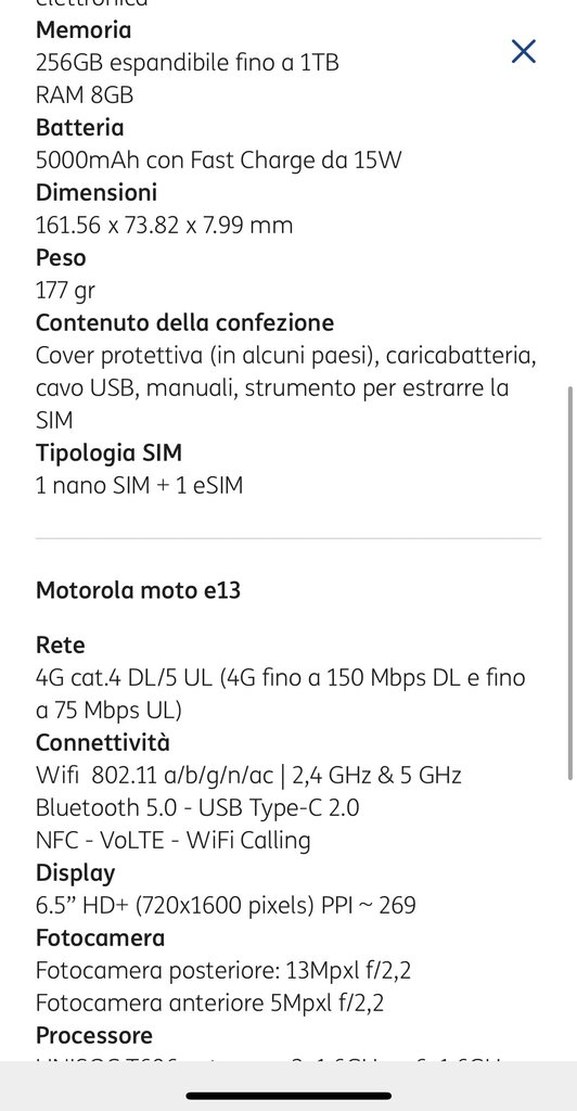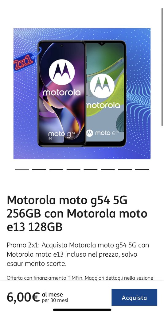 Ciao a tutti. Ho visto la seguente offerta sull’app MyTim, dedicata al mio numero, e volevo capire cosa ne pensaste di questi due telefoni, soprattutto dell’e13. Il problema è che su Internet trovo schede tecniche discordanti con quella messa nella descrizione nel sito Tim, per quanto riguarda la presenza/assenza dell’NFC e per quanto riguarda il sistema operativo (nei siti viene riportato Android Go, ma non comprendo se valga solo per la versione 2/64 o anche per la 8/128). Vorrei proporre l’e13 ad un mio parente, che attualmente usa ancora un vecchio Honor 8A, comprato a settembre 2019. Sul G54 invece non ho dubbi, viste le innumerevoli recensioni positive, che proporrei ad un altro mio parente che attualmente usa un Huawei P30 Lite.