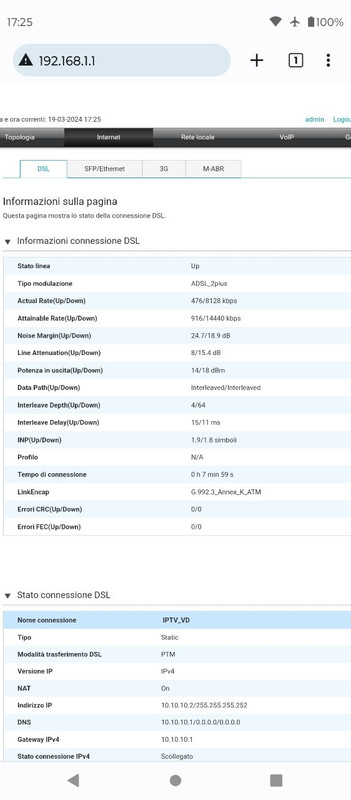 Ciao a tutti, ho un conoscente (titolare di una linea ADSL della TIM) che lamenta da qualche settimana una navigazione lenta e ballerina, ha tentato di risolvere tramite il 187 ma per loro non c’è nessun problema quindi sono andato a controllare le statistiche del modem e ho trovato dei valori molto strani, in pratica c’è una forte discrepanza tra la capacità “nominale” e “reale” della linea, secondo voi la tim ha applicato qualche blocco? Vi allego la pagina del modem e della distanza.