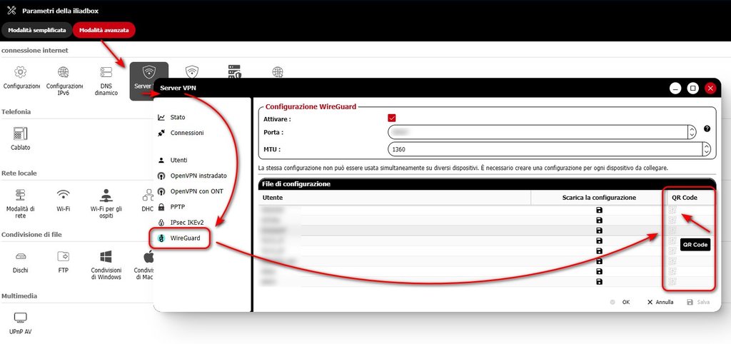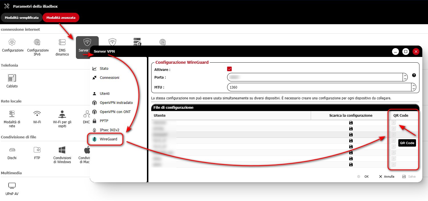 Ho attivato wireguard server su iliadbox da interfaccia web.